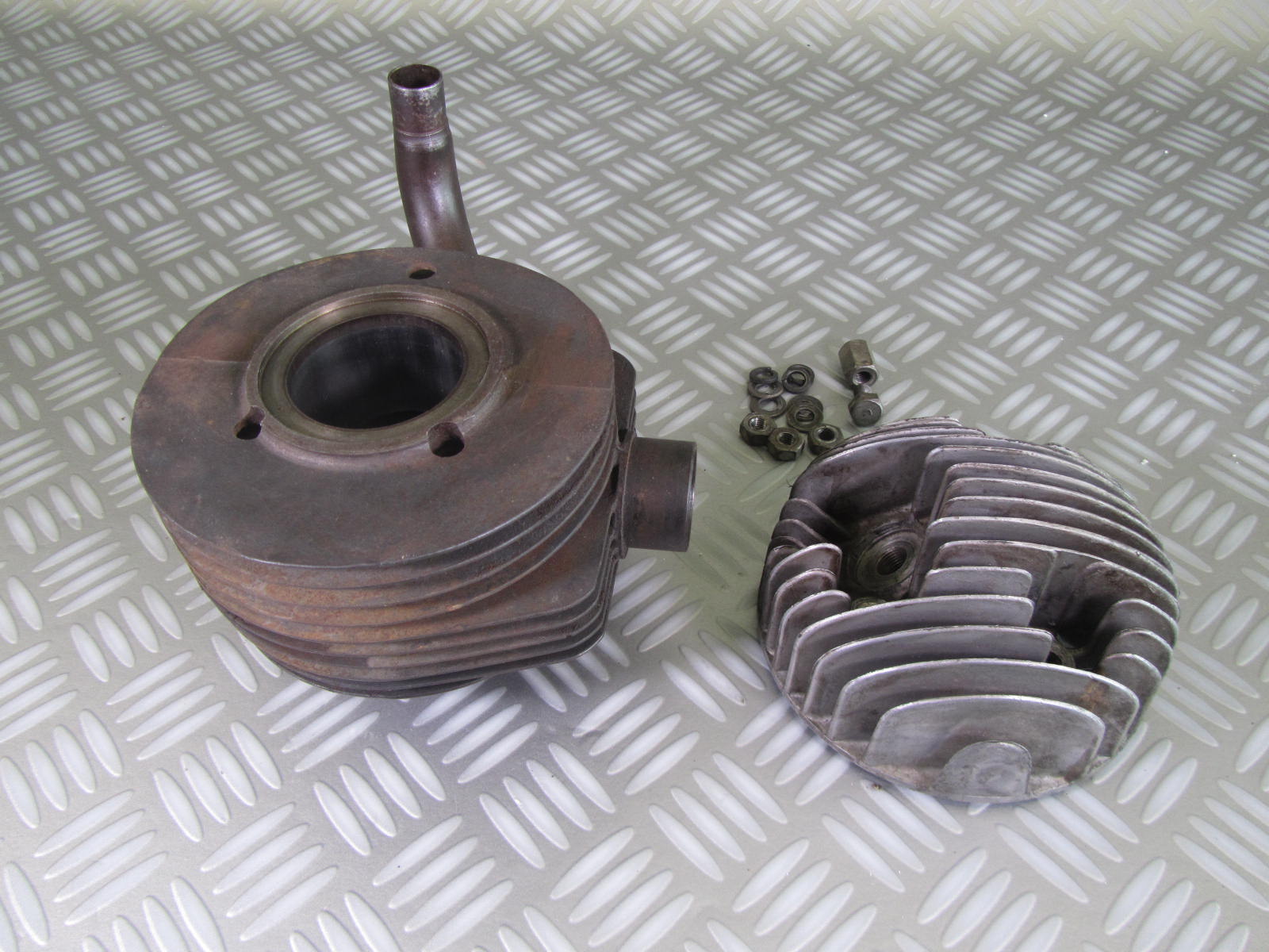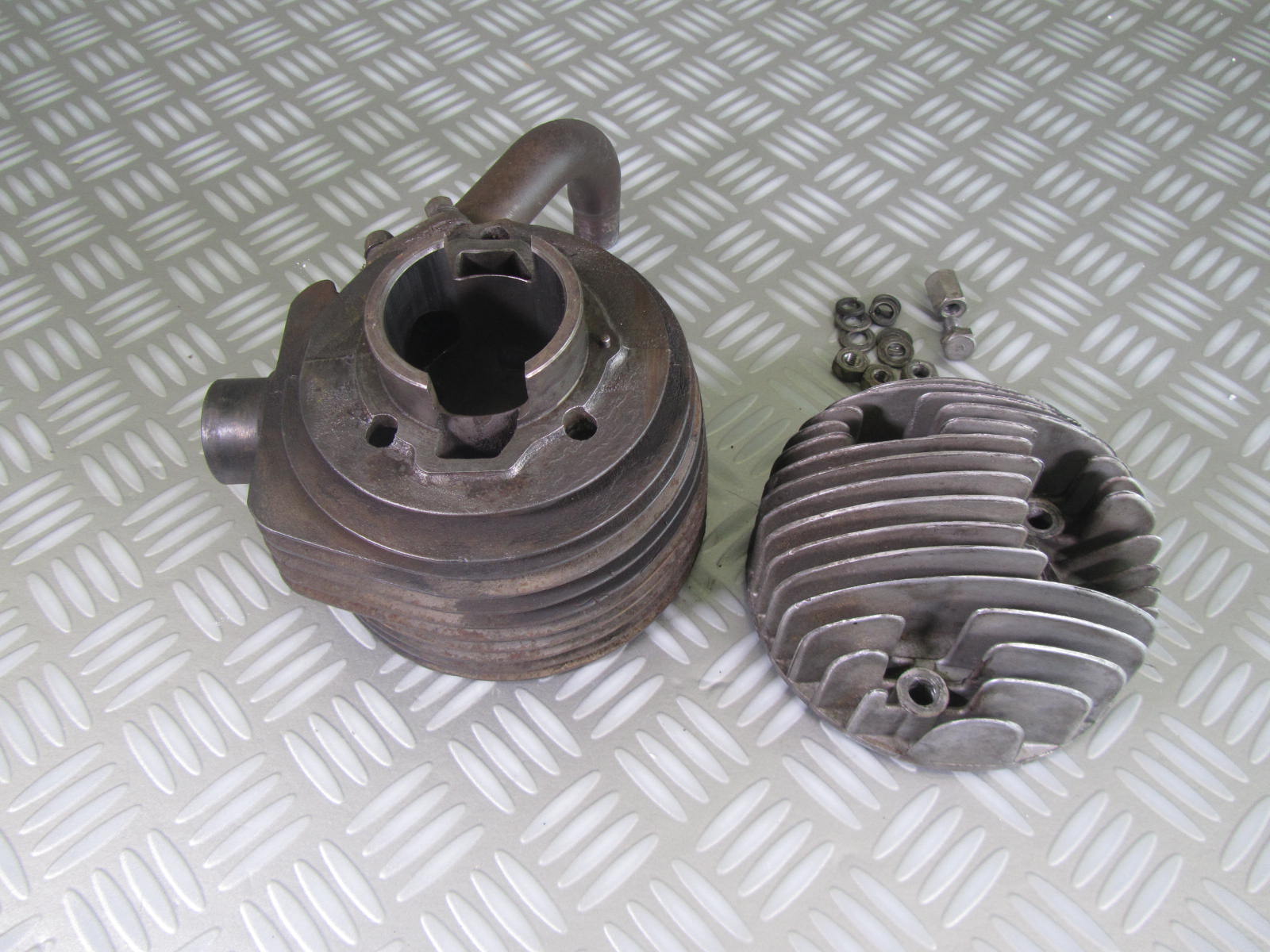 Cylindre + culasse + pipe d’admission pour Vespa ACMA 1954 / 1958. Diamètre 54 d’origine.